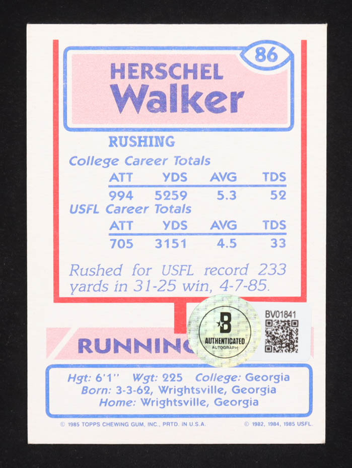 Herschel Walker Signed 1985 Topps USFL #86 (Beckett)
