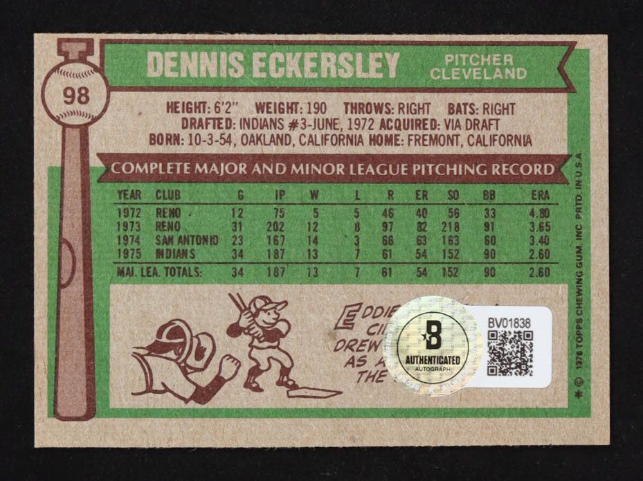 Dennis Eckersley Signed 1976 Topps #98 RC (Beckett)