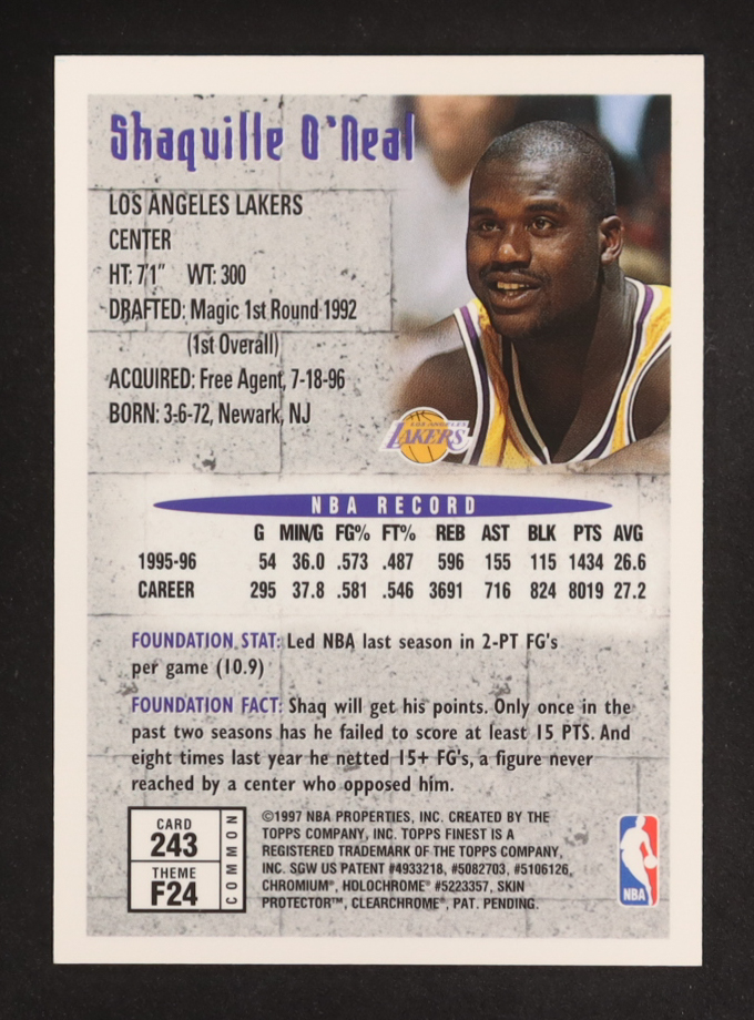 Shaquille O'Neal 1996-97 Finest #243 With Coating