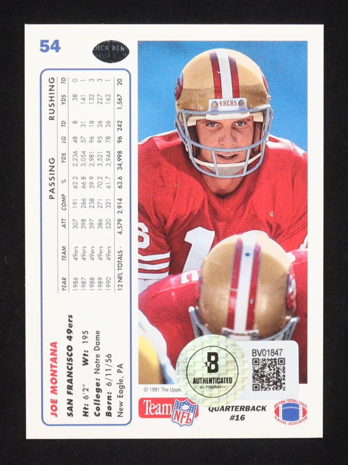 Joe Montana Signed 1991 Upper Deck 3X #54 #93/1980 (Beckett)
