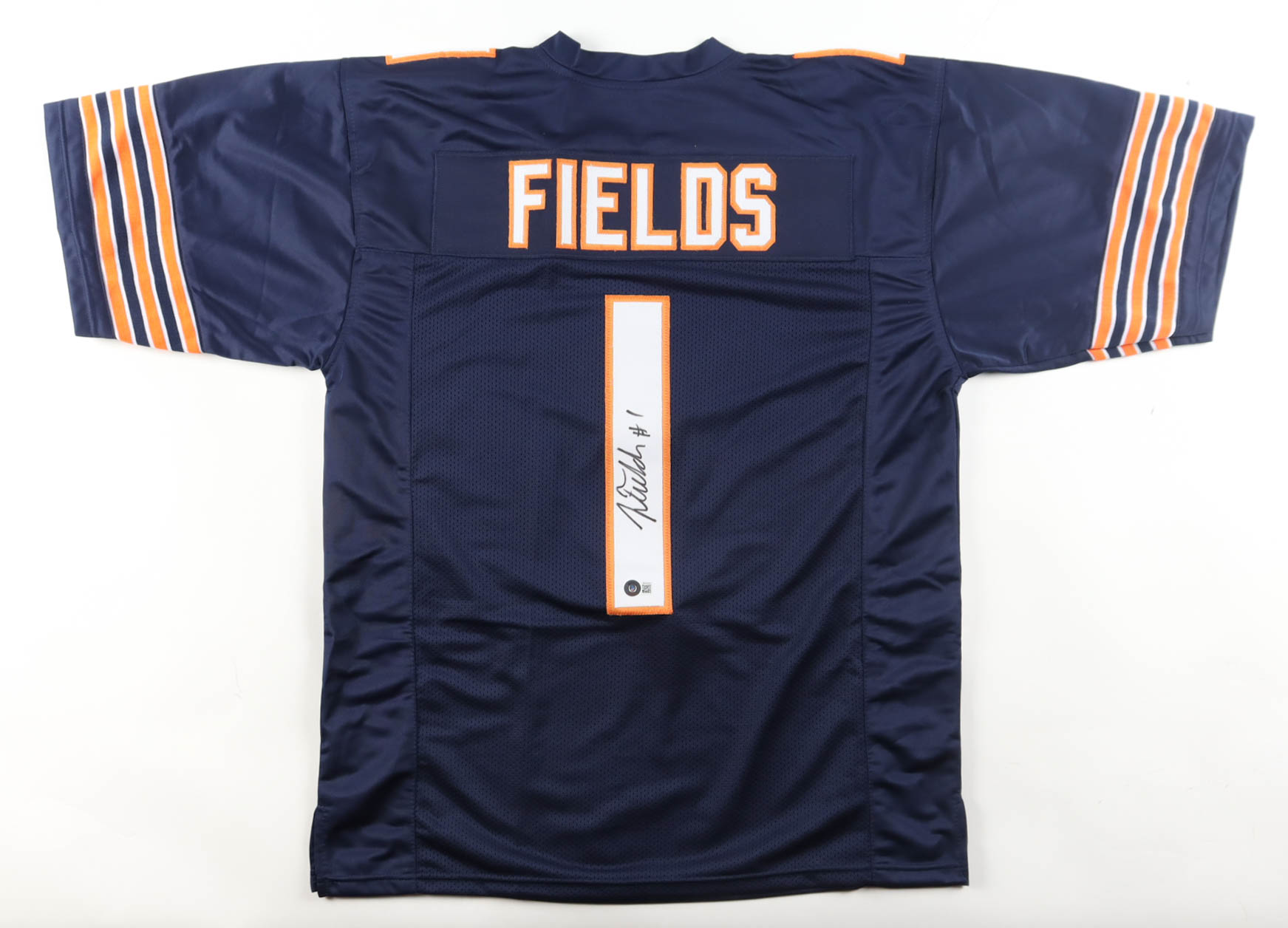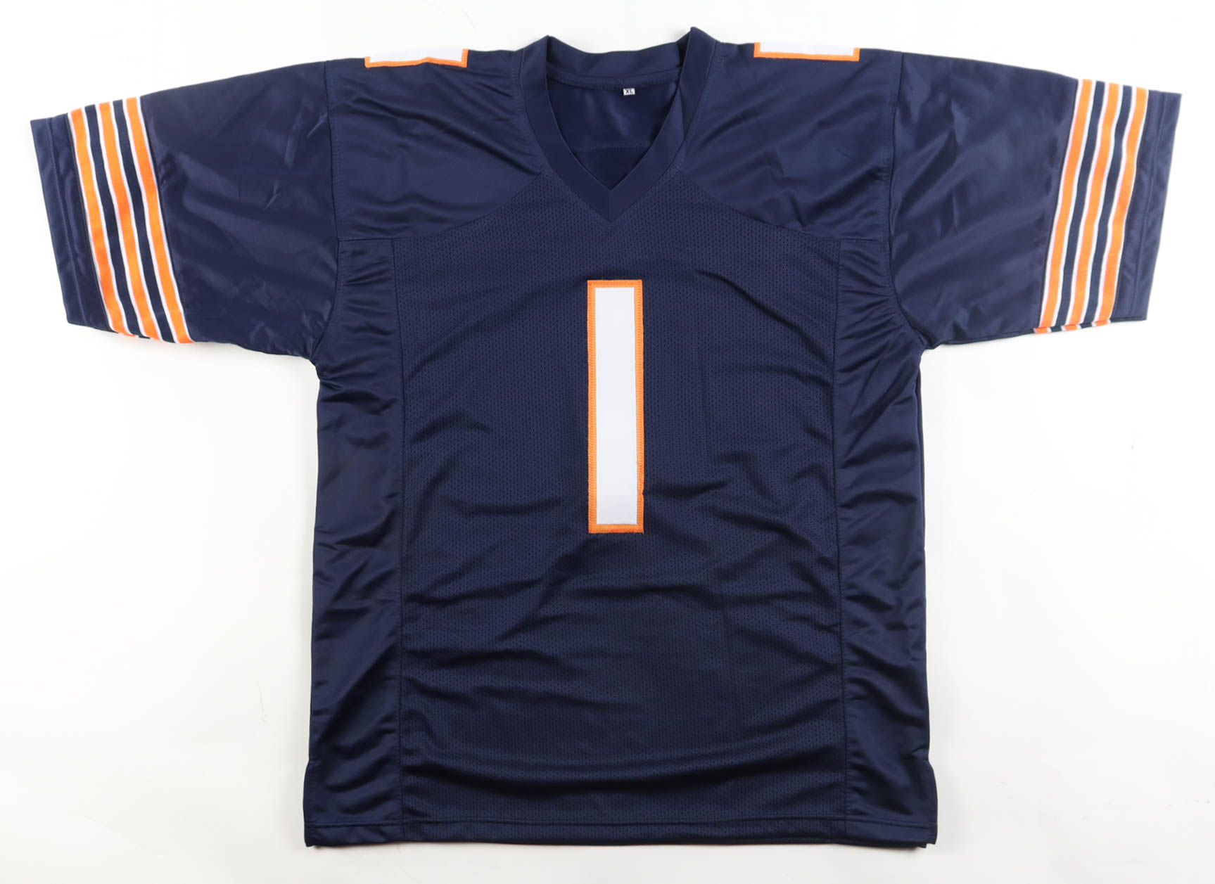 Custom jersey with everything sewn on, size XL. Hand signed by Justin Fields (Chicago Bears).
