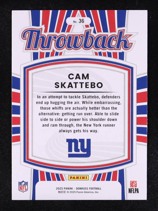 Cam Skattebo 2025 Donruss Rated Rookies Throwback #36 RC