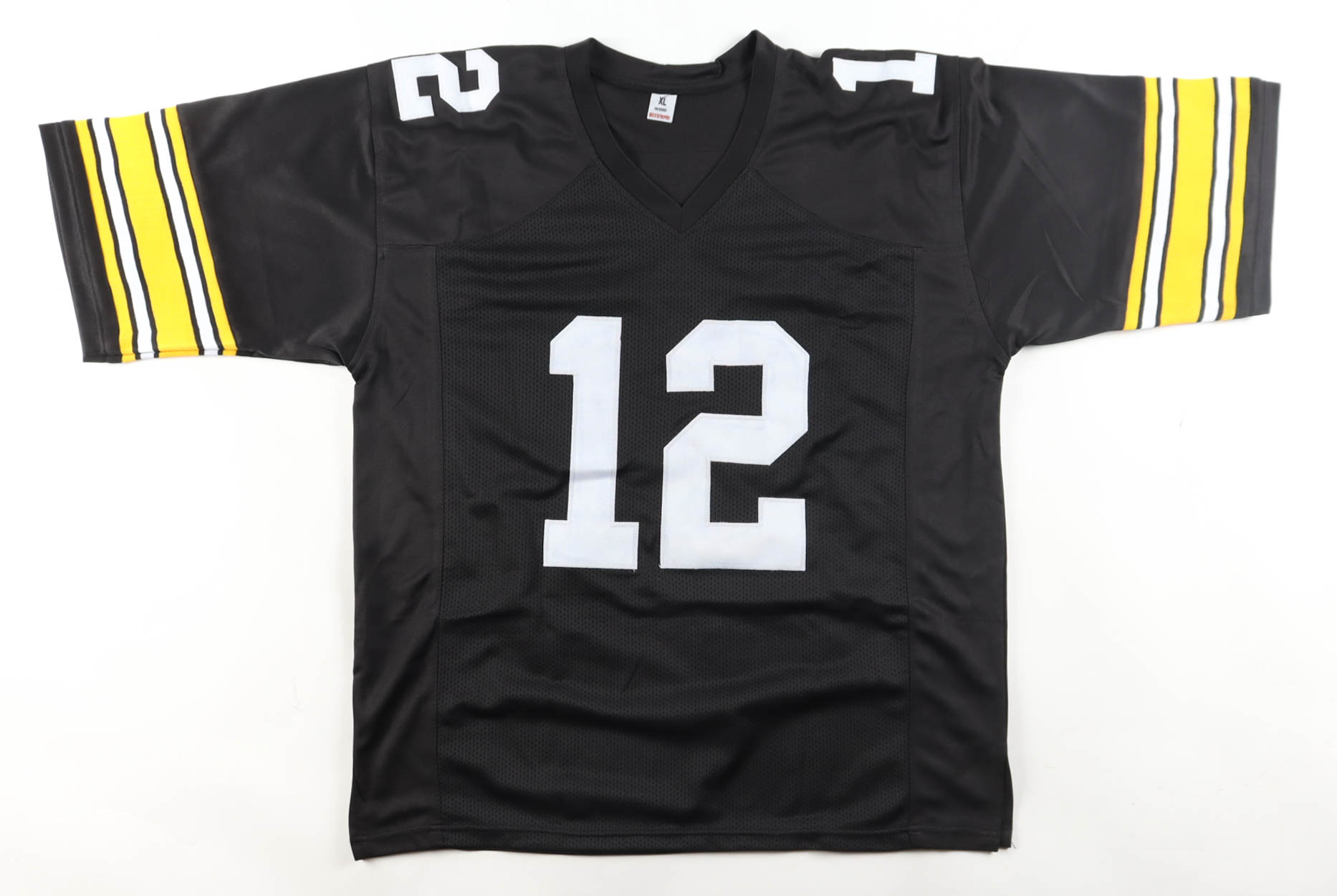 Custom jersey with everything sewn on, size XL. Hand signed by Terry Bradshaw (Pittsburgh Steelers, HOF).