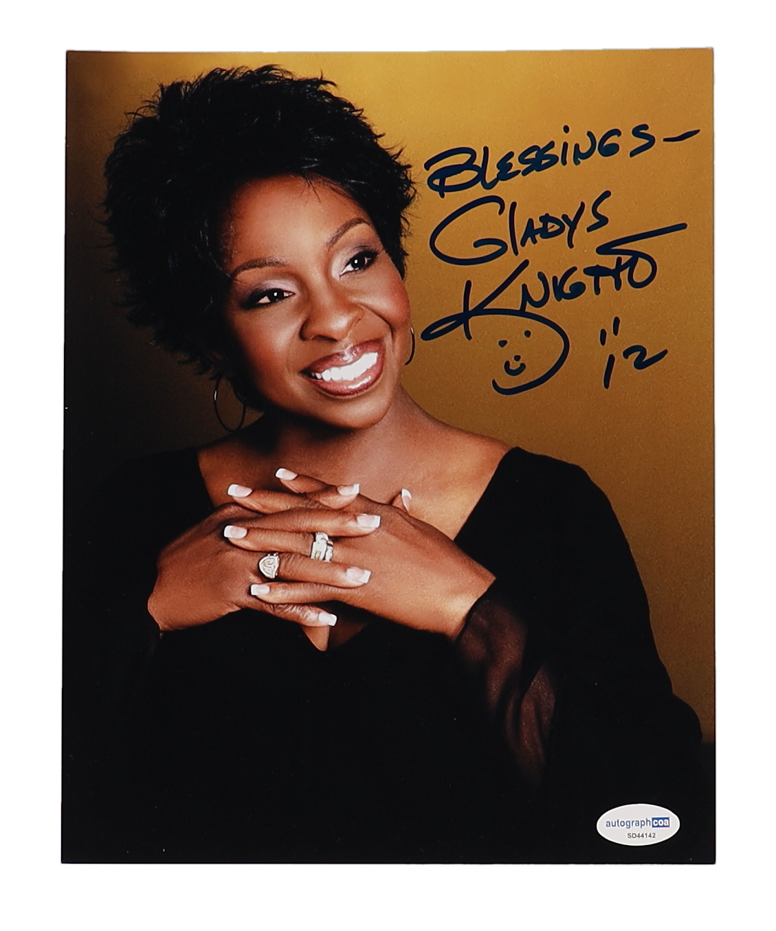 Photo measure 8" x 10" in size. Hand-signed and inscribed by Gladys Knight.