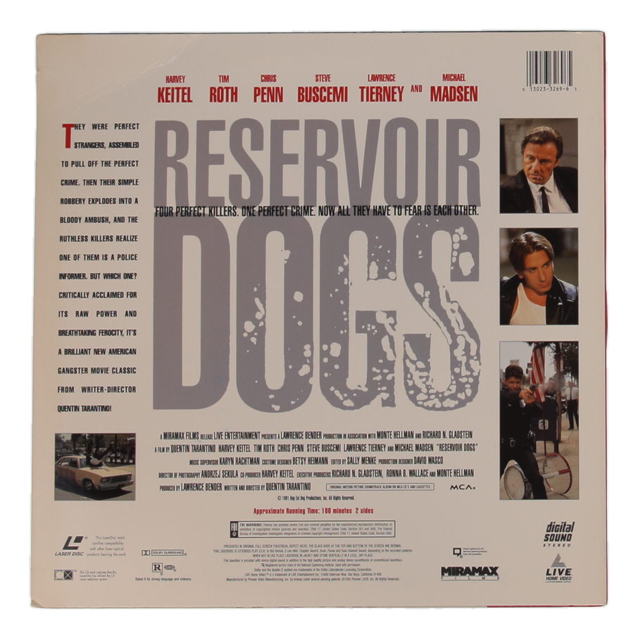 "Reservoir Dogs" LaserDisc has been hand-signed on the slipcover by Quentin Tarantino. Please note, LaserDisc is included as shown.