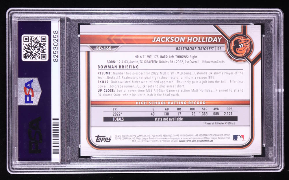 Jackson Holliday 2022 Bowman Draft #BD168 RC (PSA 10)