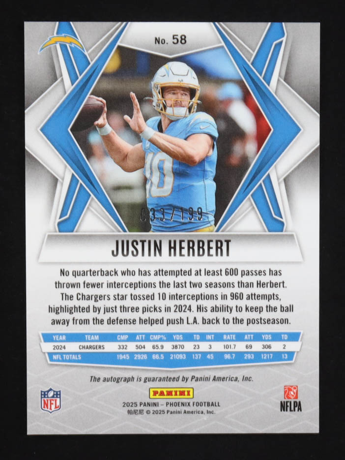 Justin Herbert 2025 Panini Phoenix Autographs Silver #58 #033/199