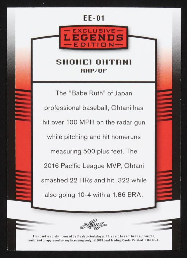 Shohei Ohtani 2018 Leaf Ohtani Legends Exclusive Edition #EE01 RC