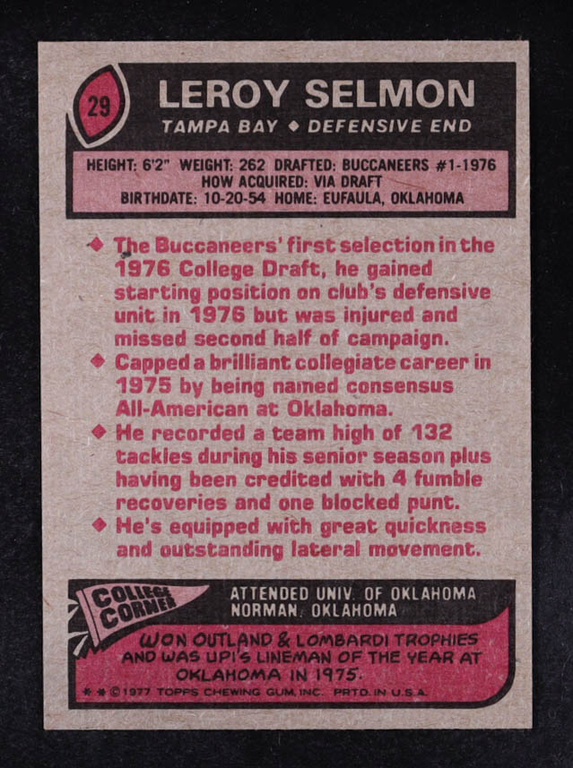 Lee Roy Selmon 1977 Topps #29 RC