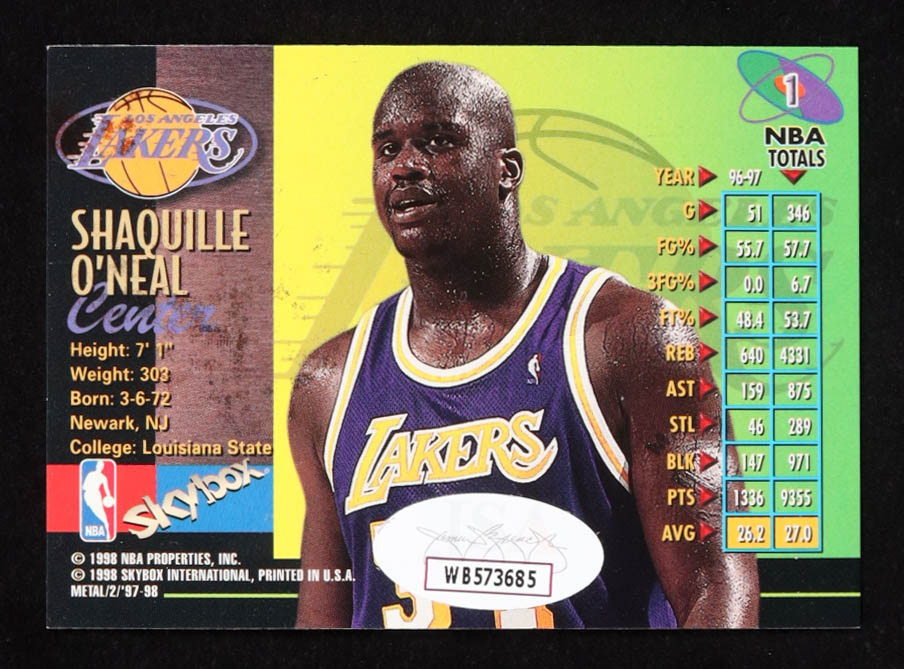Shaquille O'Neal Signed 1997-98 Metal Universe Championship #1 (JSA)