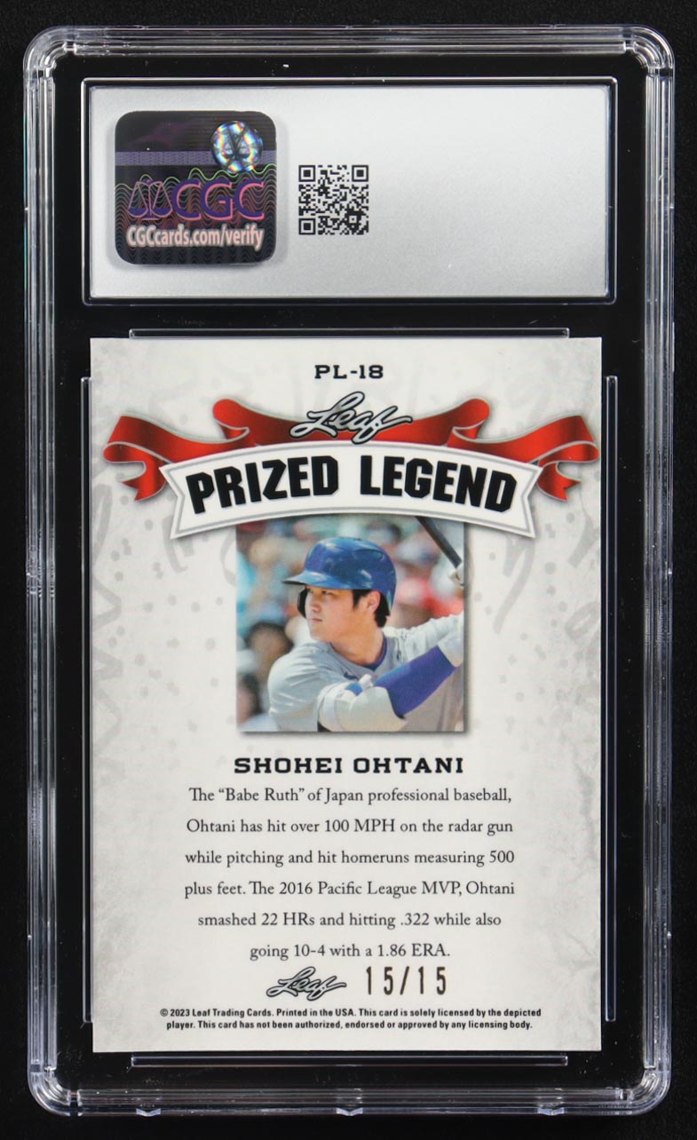 Shohei Ohtani 2023 Leaf Metal Special Release Prized Legend Purple Mojo #PL-18 #15/15 (CGC 10)