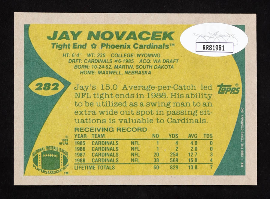 Jay Novacek Signed 1989 Topps #282 RC (JSA)