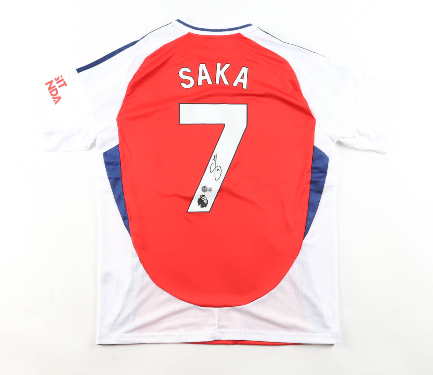 Adidas jersey with everything pressed on, size M. Hand-signed by Bukayo Saka (Arsenal F.C.).
