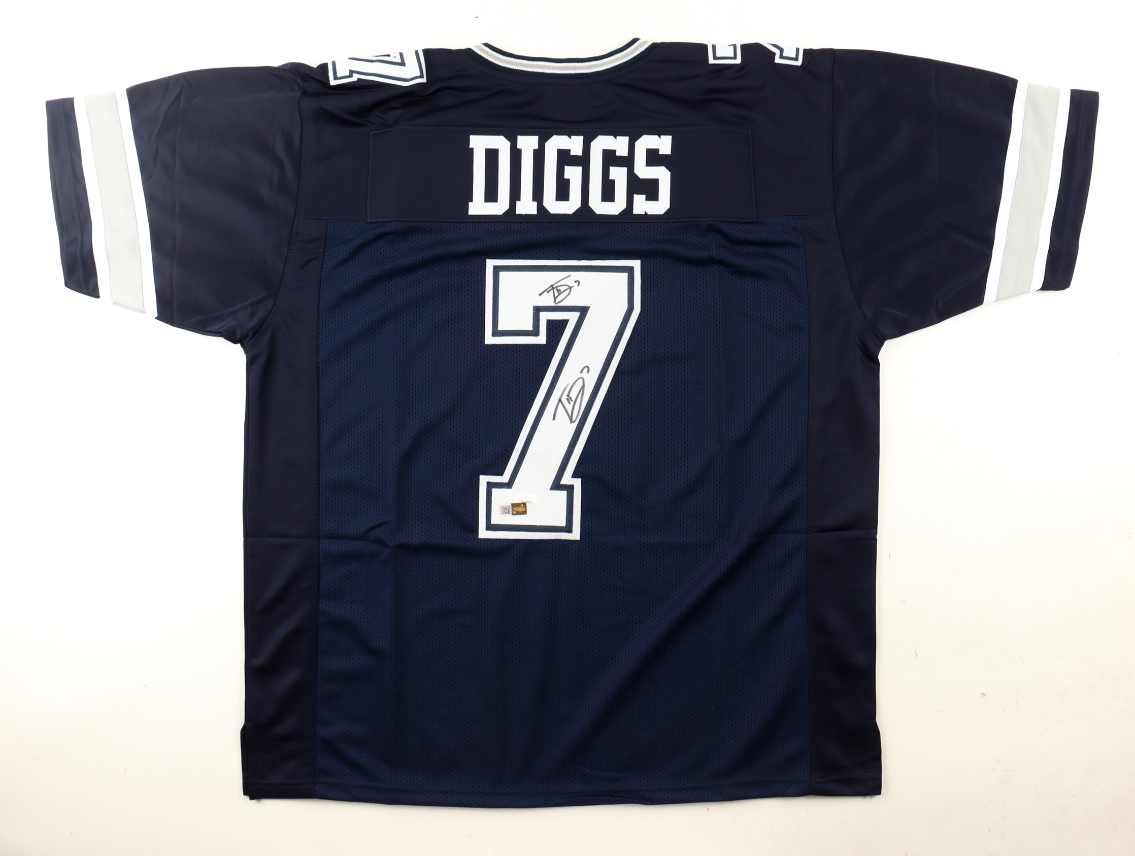 Custom jersey with everything sewn on, size XL. Hand-signed twice by Trevon Diggs.