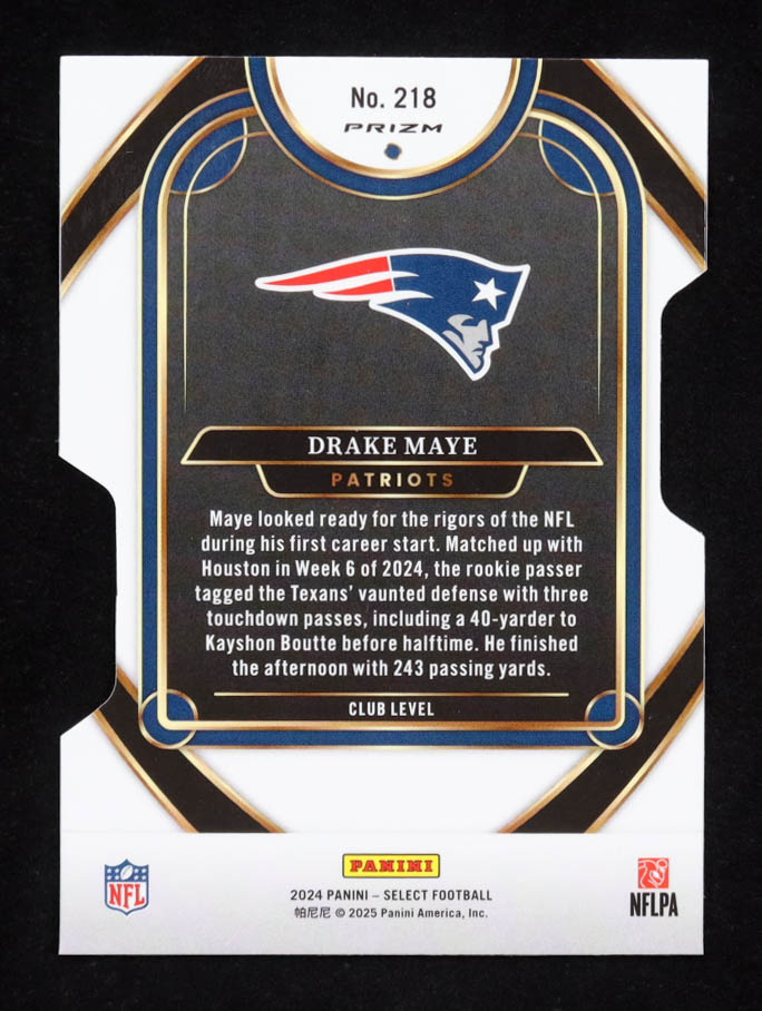 Drake Maye 2024 Select Prizm Silver Die Cut #218 RC