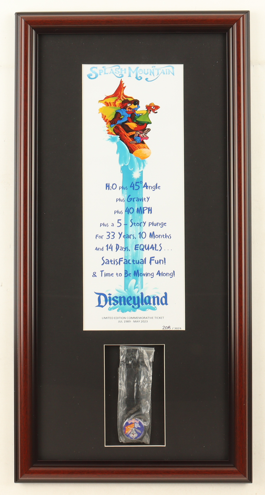 Disneyland "Splash Mountain" Custom Framed Poster Print Display With Original Splash Mountain Watch