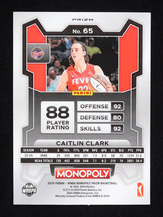 Caitlin Clark 2024 Panini Prizm Monopoly WNBA Red Classic Icons #65 RC