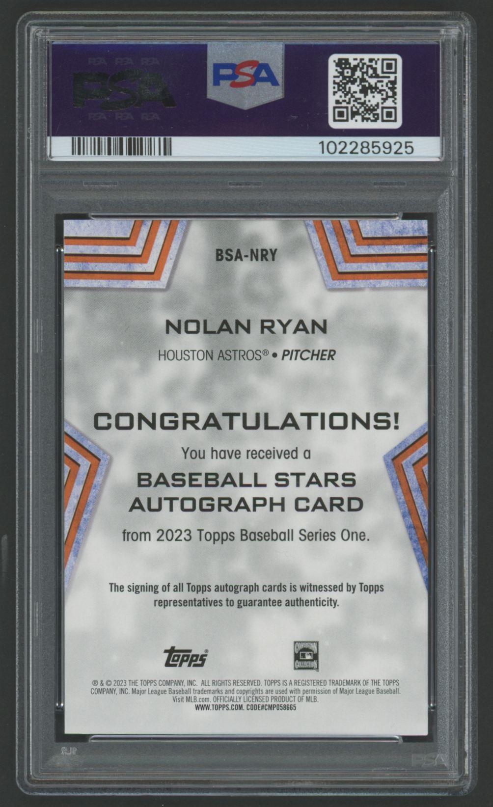 Nolan Ryan 2023 Topps Baseball Stars Autograph #BSANRY (PSA 8)