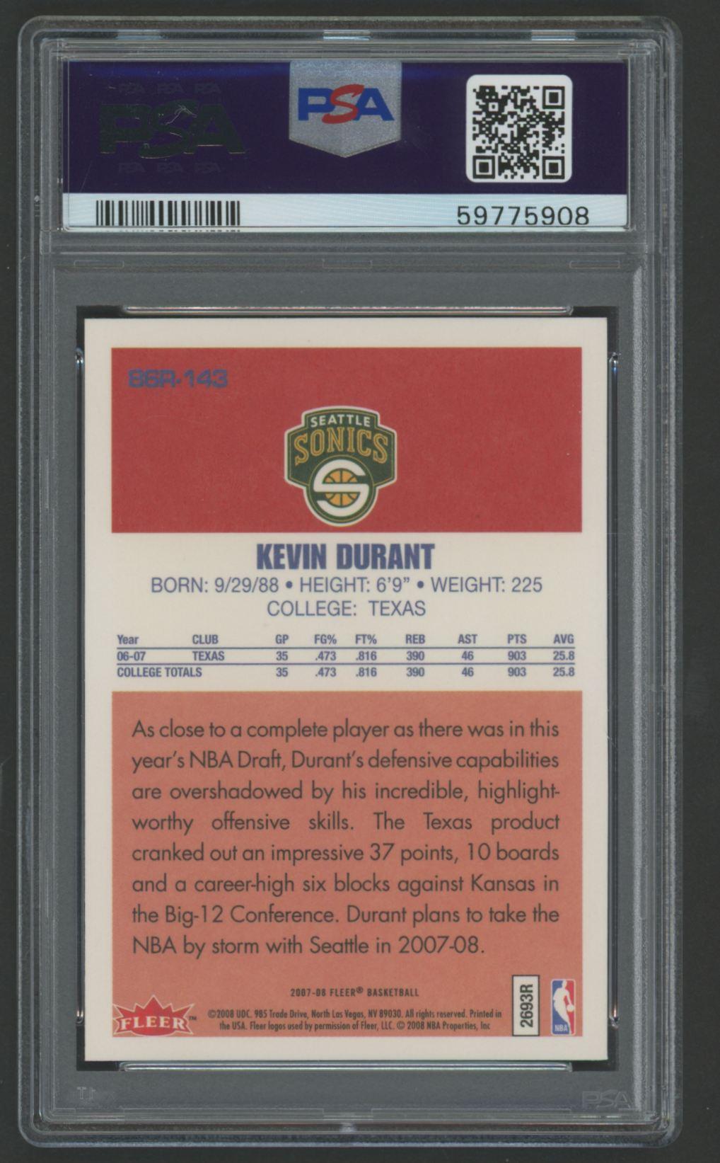 Kevin Durant 2007-08 Fleer 1986-87 Rookies #143 (PSA 9)