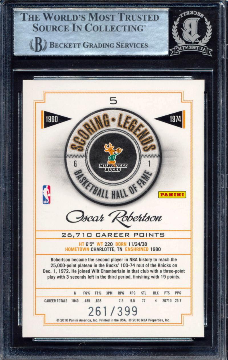 Oscar Robertson Signed 2009-10 Hall of Fame Scoring Legends #5 #261/399 (BGS)
