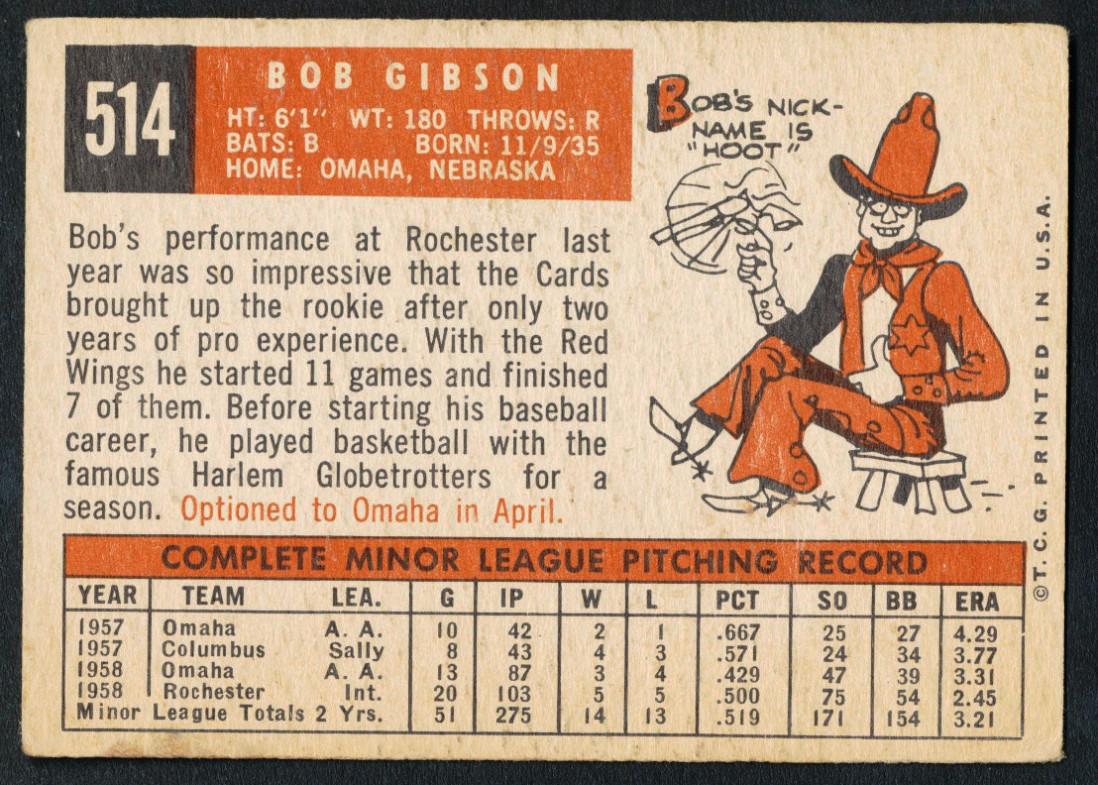 Bob Gibson 1959 Topps #514 RC