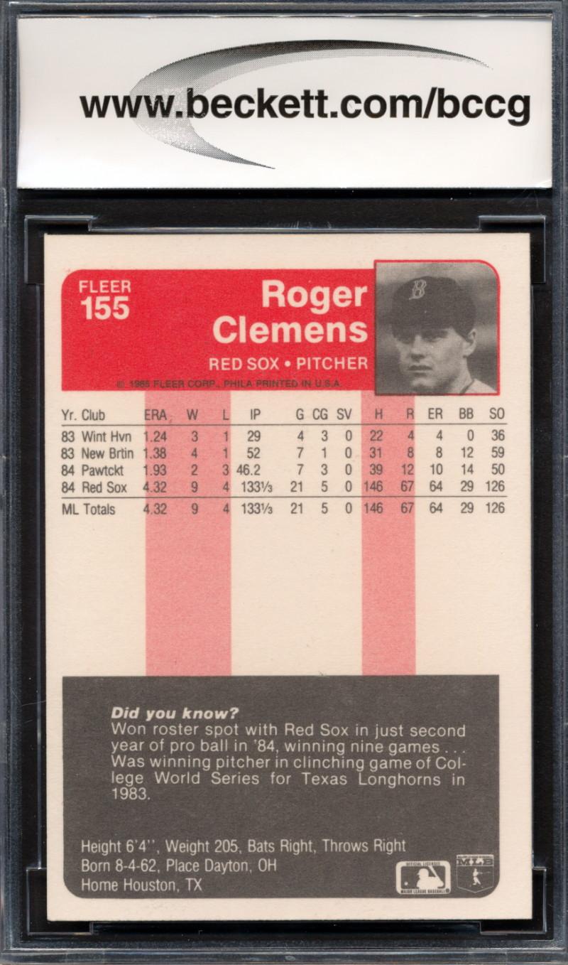 Roger Clemens 1985 Fleer #155 RC (BCCG 9)