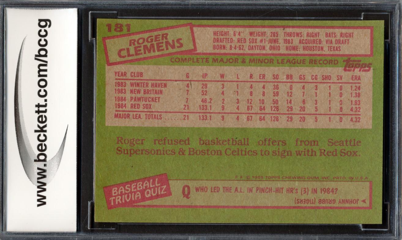 Roger Clemens 1985 Topps #181 RC (BCCG 9)