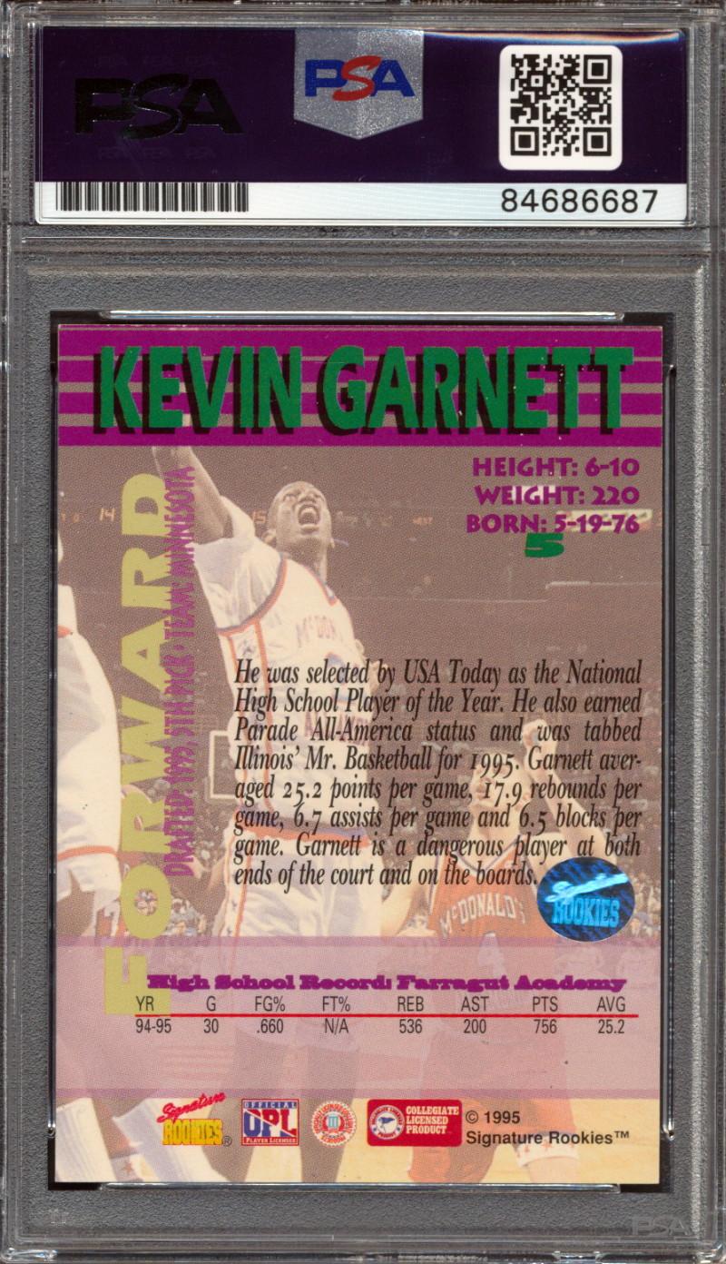 Kevin Garnett 1995 Signature Rookies Autobilia Autographs #5 #958/1000 (PSA)