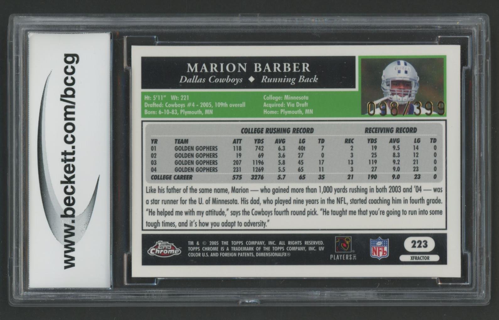 Marion Barber 2005 Topps Chrome Gold Xfractors #223 #98/399 (BCCG 10)