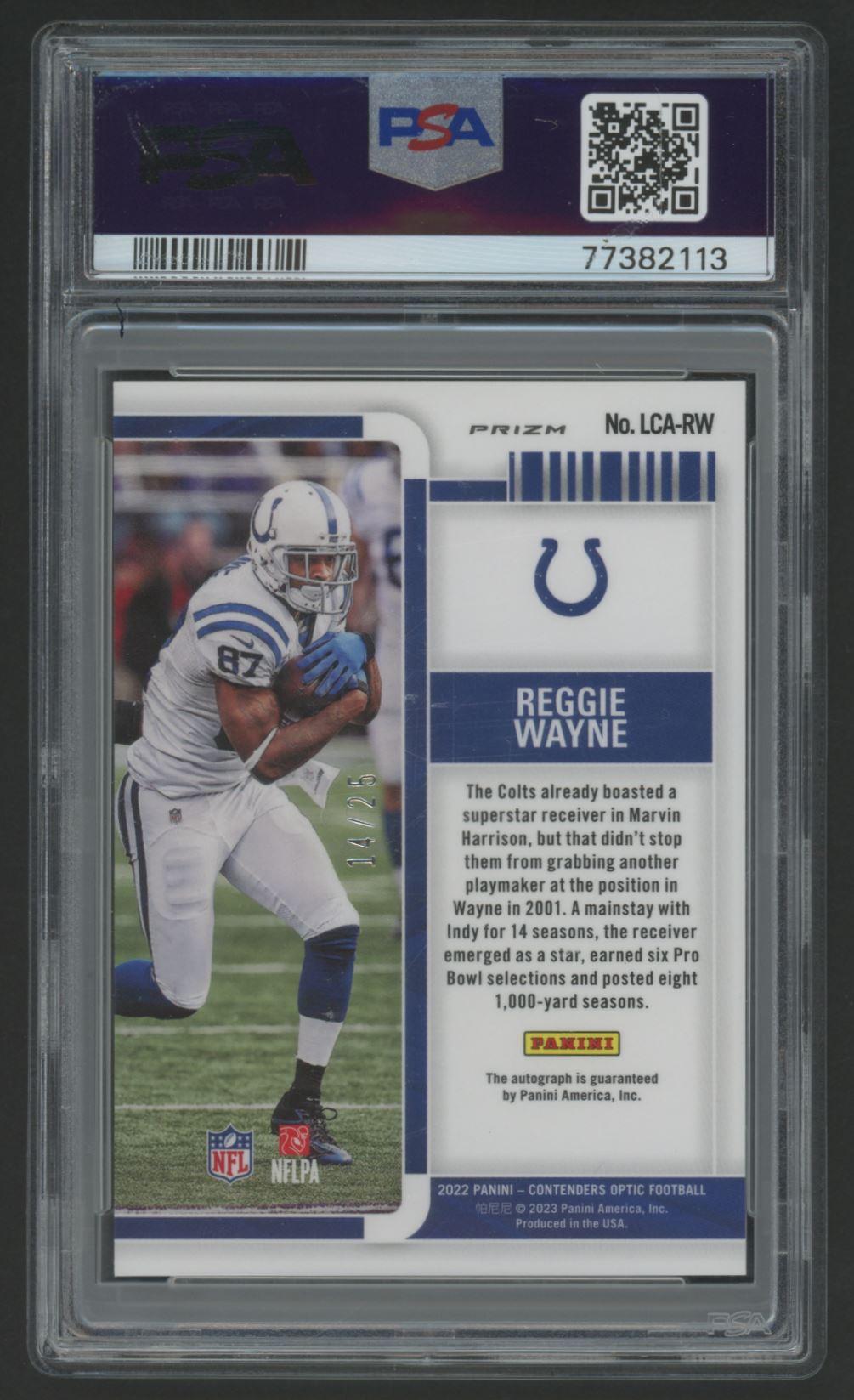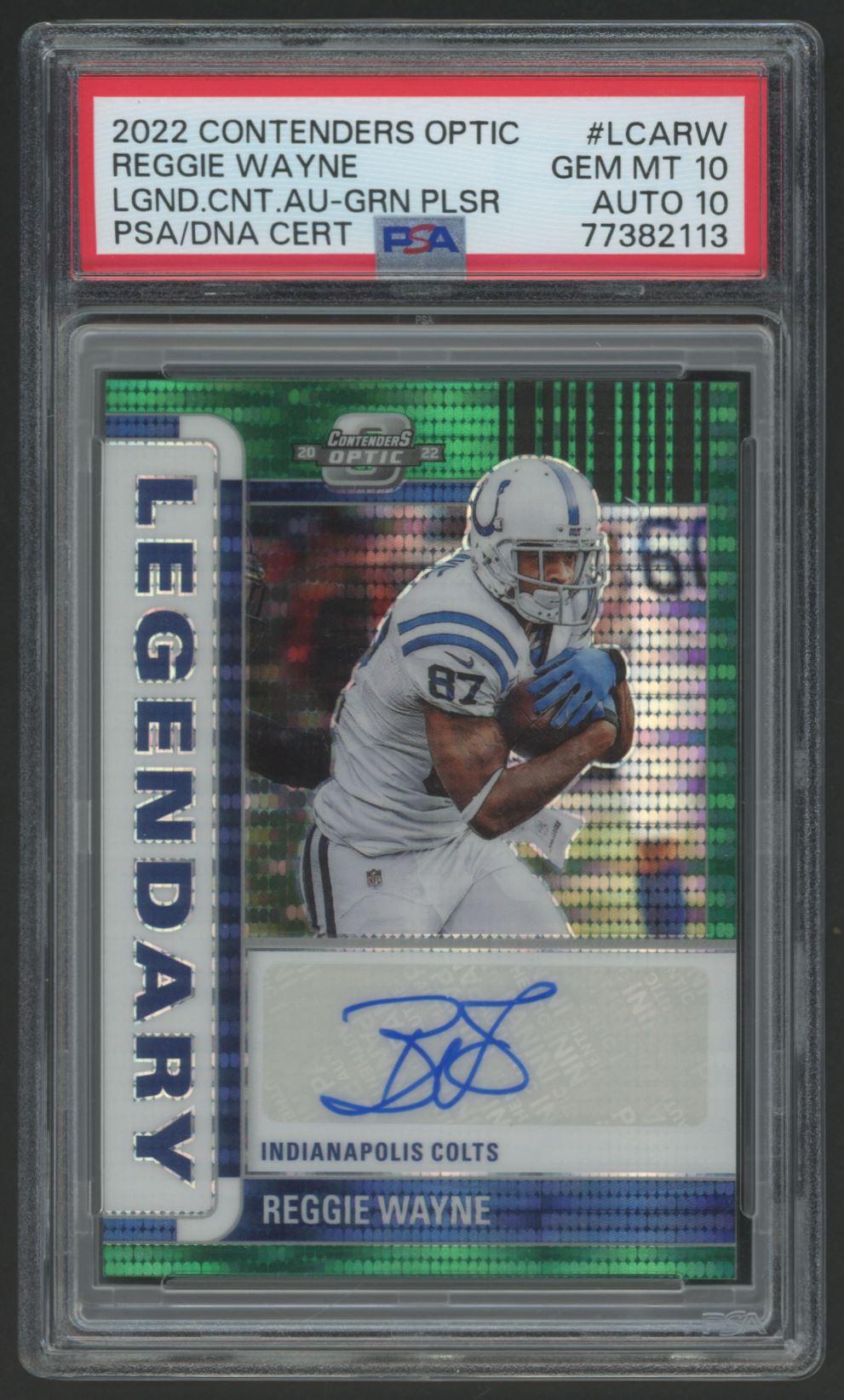 Reggie Wayne 2022 Contenders Optic Legendary Autographs Green Pulsar #LCARW #14/25 (PSA 10 | Autograph Graded 10)