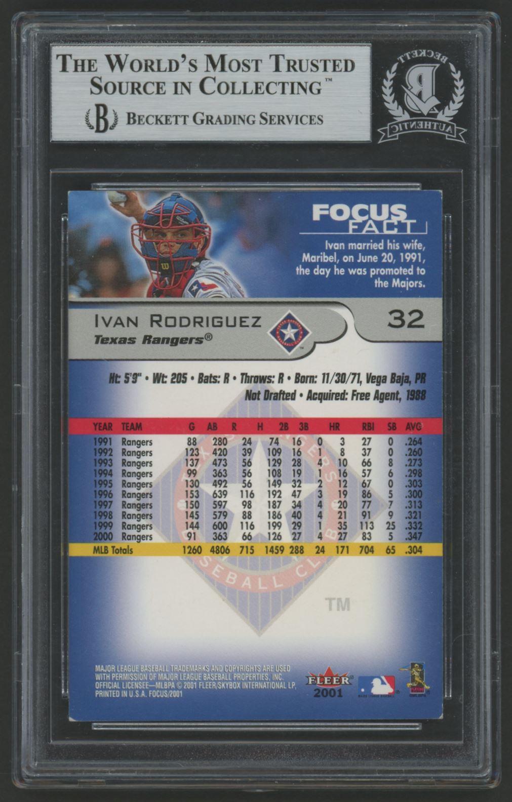 Ivan Rodriguez Signed 2001 Fleer Focus #32 (BGS)