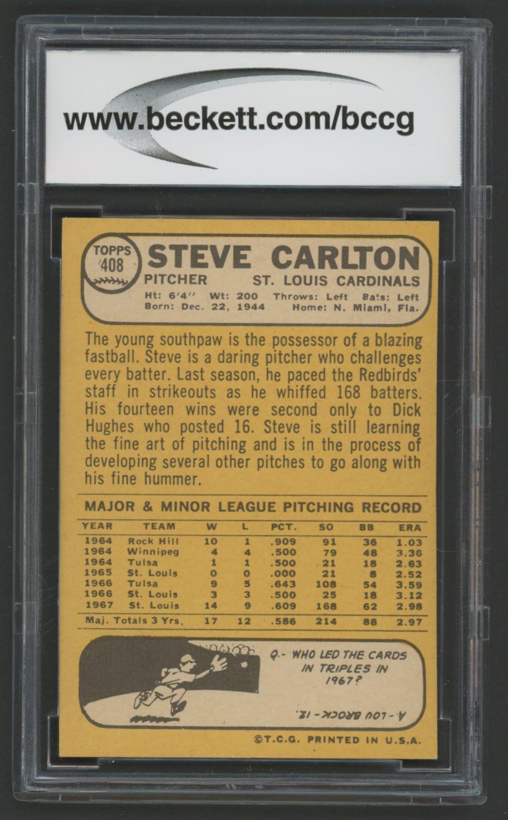 Steve Carlton 1968 Topps #408 (BCCG 9)