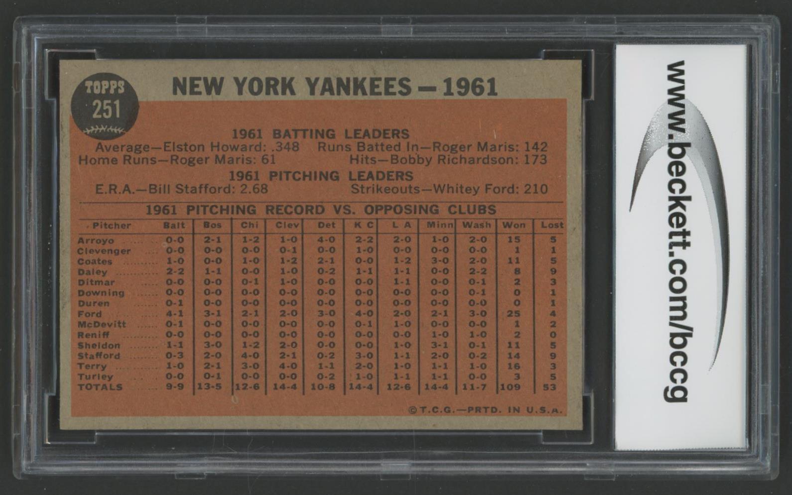 New York Yankees 1962 Topps #251 TC (BCCG 9)