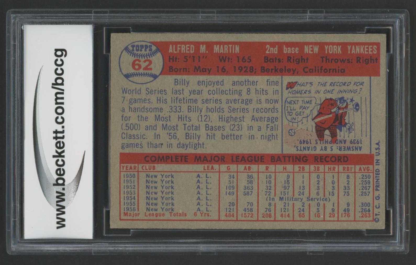 Billy Martin 1957 Topps #62 (BCCG 9)