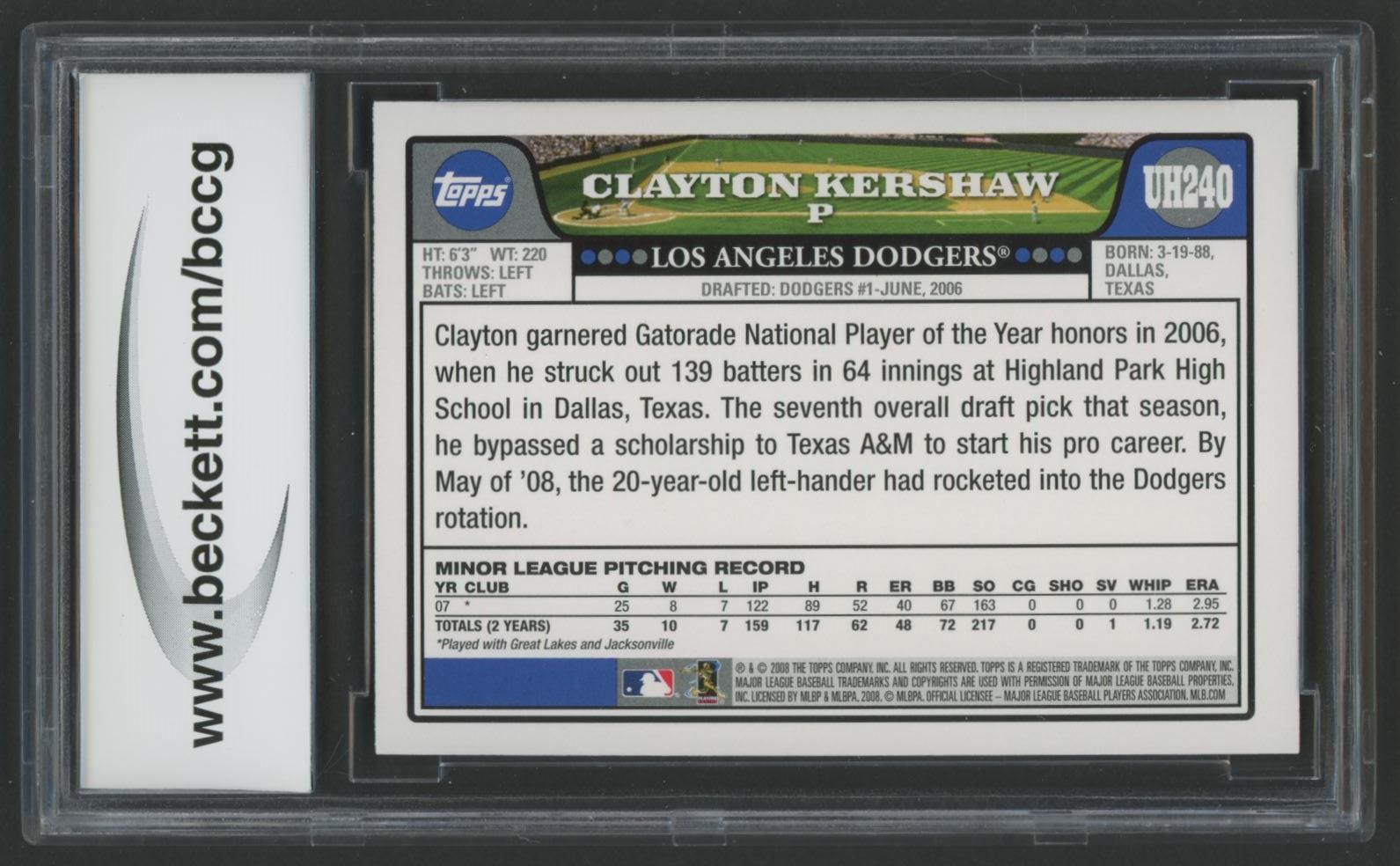 Clayton Kershaw 2008 Topps Update #UH240 RC (BCCG 9)