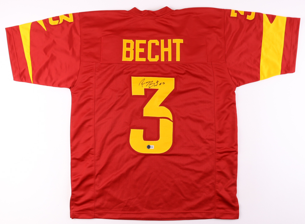 Custom jersey with everything sewn on, size XL. Hand-signed by Rocco Becht (Iowa State Cyclones).