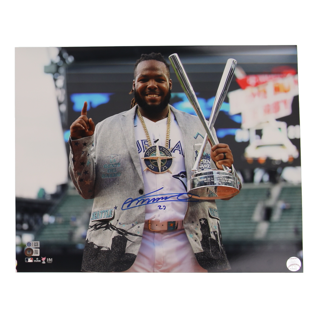 Photo measures 16" x 20" in size and has been hand-signed by Vladimir Guerrero Jr. (Toronto Blue Jays).