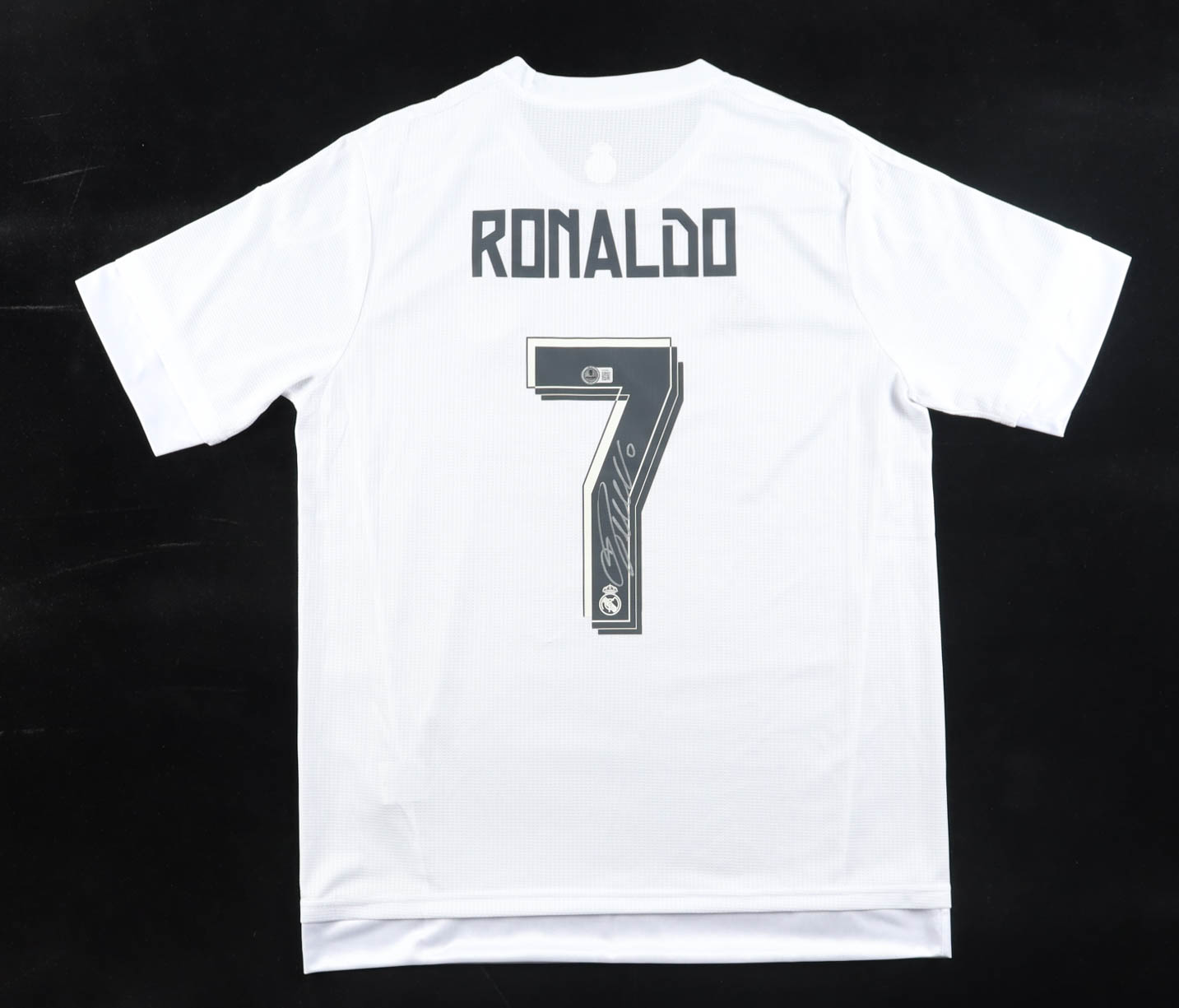 Adidas jersey with everything pressed on, size L. Hand-signed by Cristiano Ronaldo (Real Madrid CF).