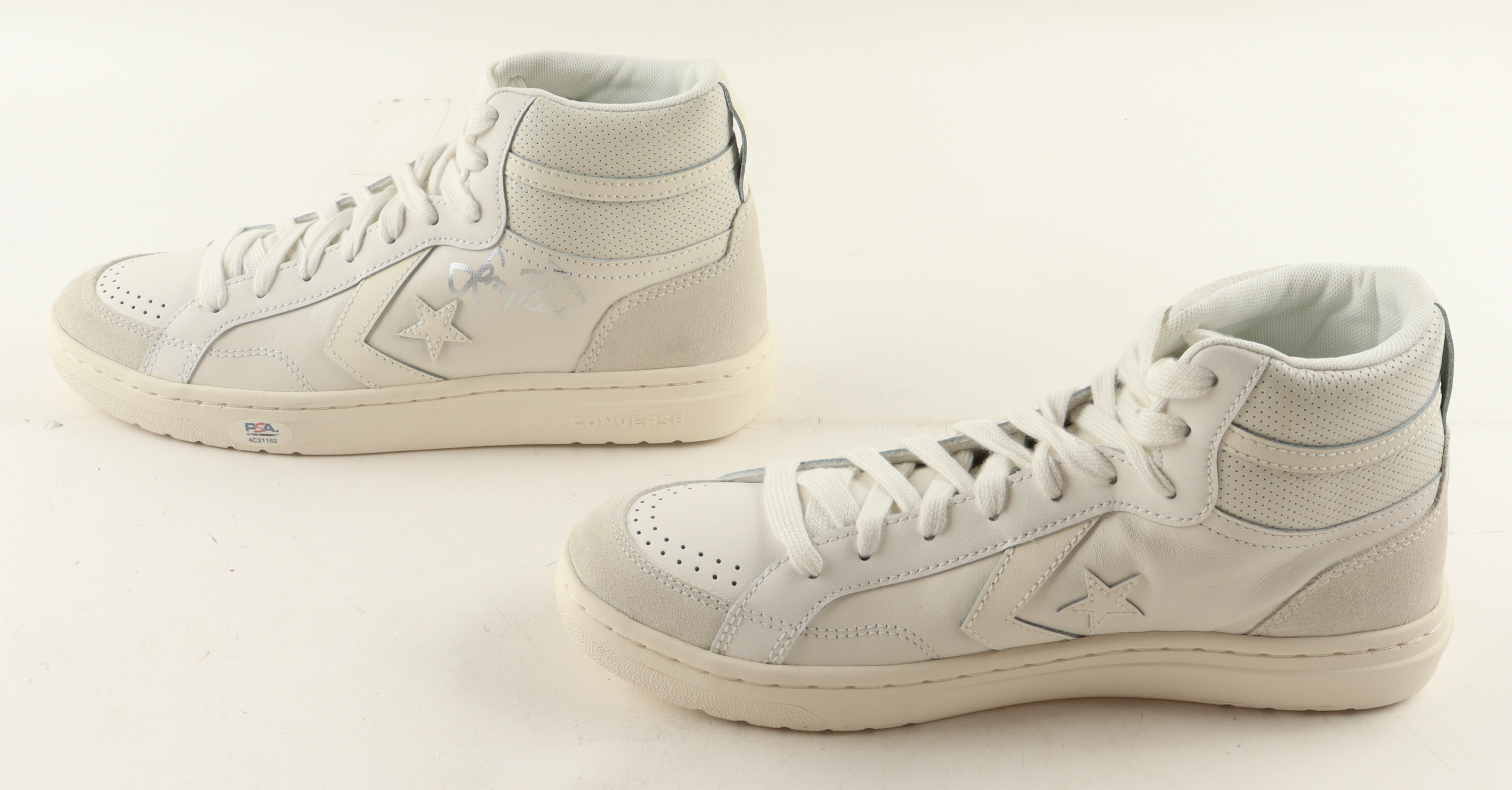 Set of (2) Converse All Star White Leather Basketball Shoes have been hand-signed by Larry Bird (Boston Celtics, HOF). Please refer to photos for more details on the condition of the items.