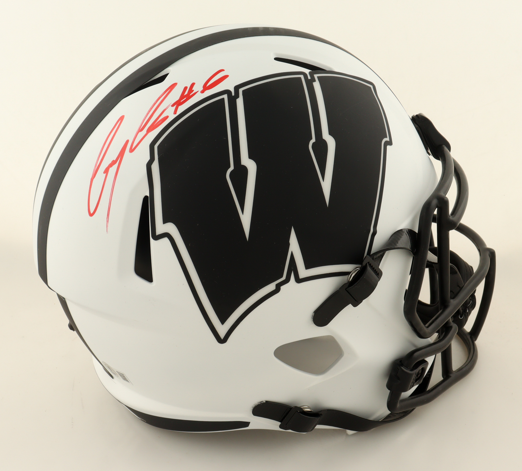 Riddell Wisconsin Badgers full-size Lunar Eclipse alternate replica speed helmet. Hand-signed by Corey Clement.