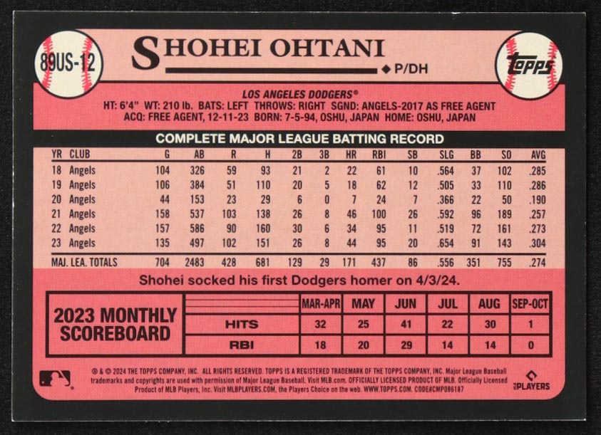Shohei Ohtani 2024 Topps Update '89 Topps #89US12
