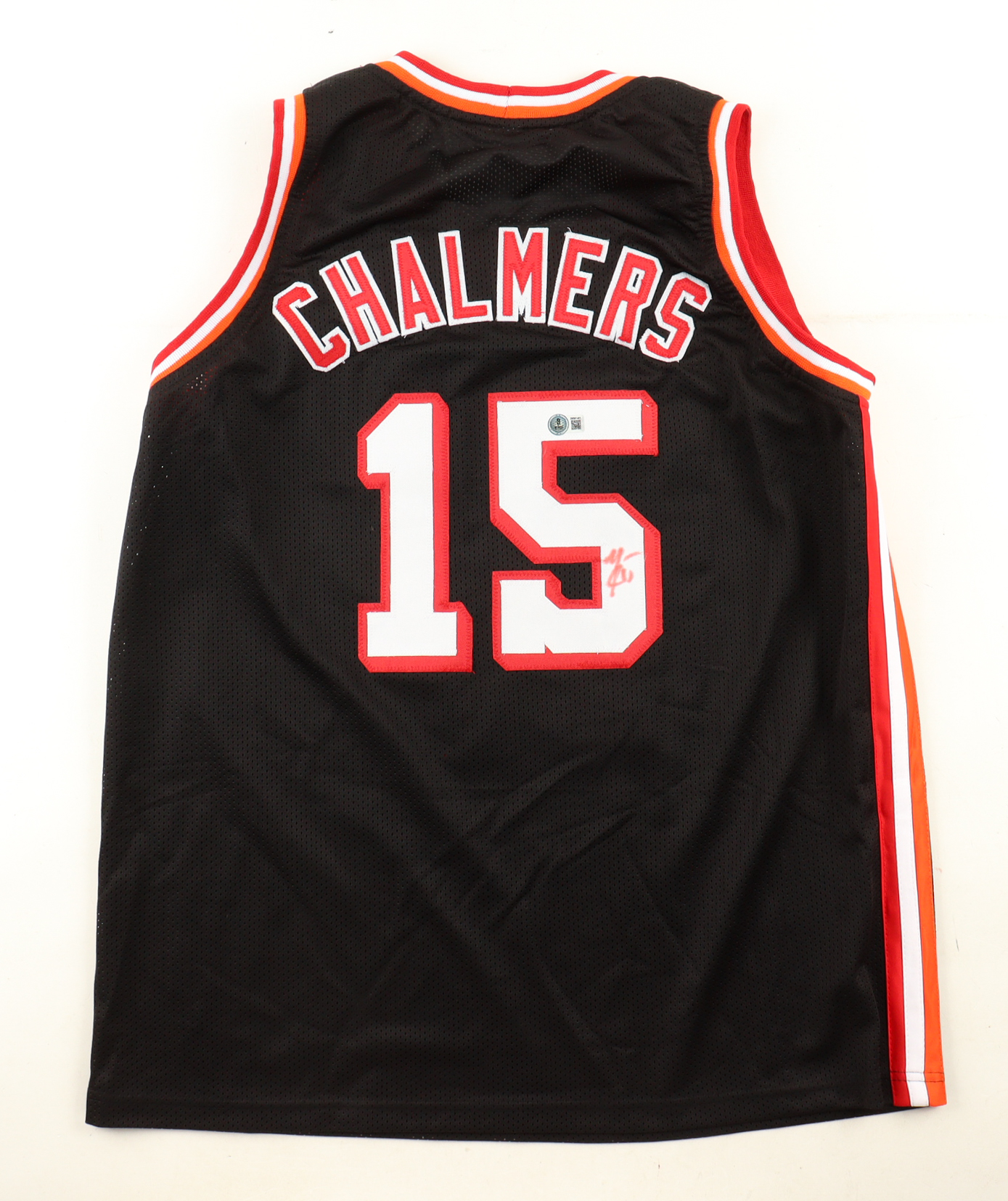 Custom jersey with everything sewn on, size XL. Hand-signed by Mario Chalmers (Miami Heat).