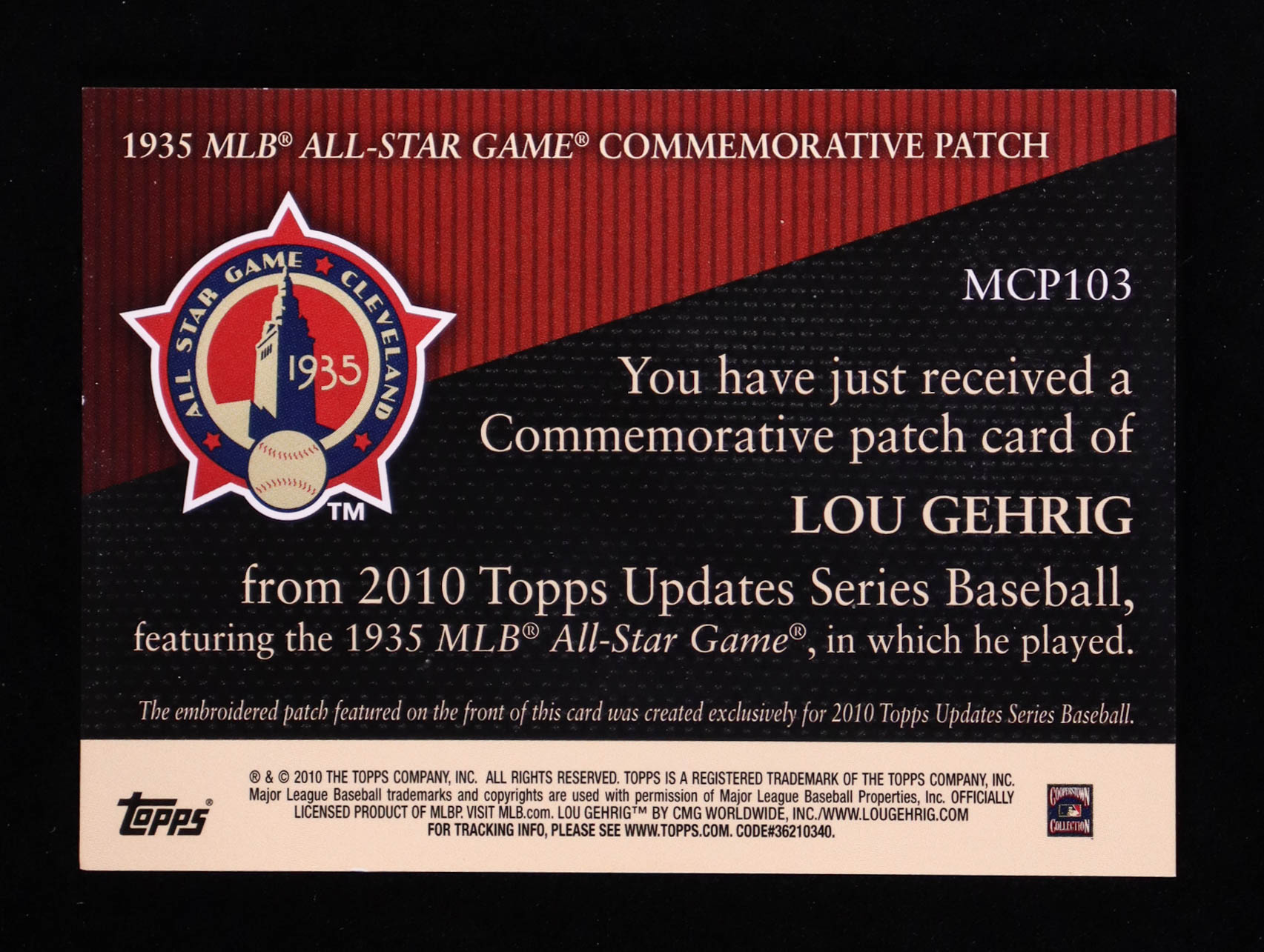 Lou Gehrig 2010 Topps Commemorative Patch #MCP103