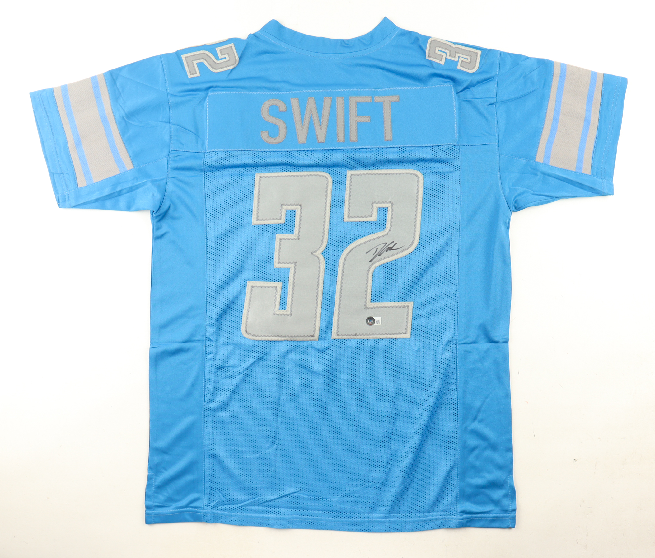 Custom jersey with everything sewn on, size XL. Hand-signed by D'Andre Swift.