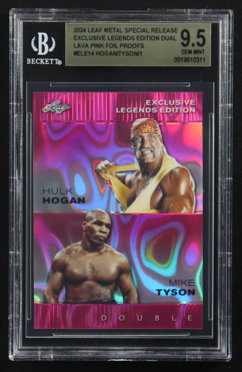 Mike Tyson / Hulk Hogan 2024 Leaf Metal Special Release Exclusive Legends Ed. Dual Pink Foil Proofs #ELE14 (BGS 9.5)