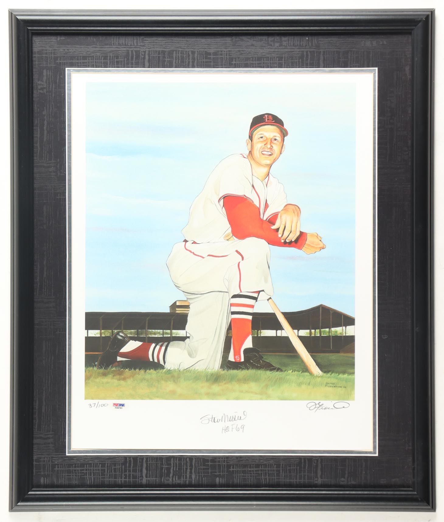Custom frame measures approximately 22" x 28" in size. Print is hand-signed and inscribed by Stan Musial (St. Louis Cardinals).