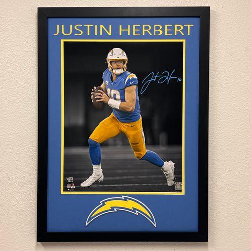 Custom frame measures 22” x 30” in size and features a photo that has been hand-signed by Justin Herbert (Los Angeles Chargers).