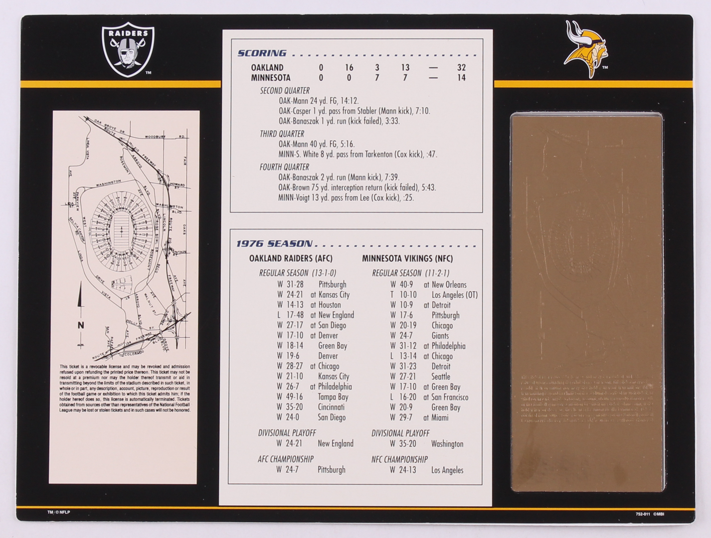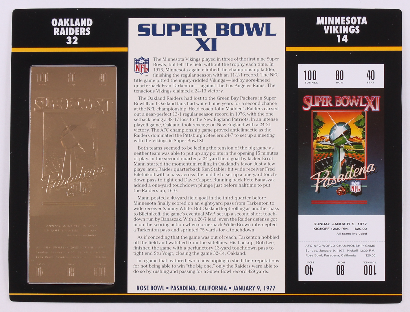 Commemorative Super Bowl XI Scorecard With 22kt Gold Ticket: Raiders vs Vikings