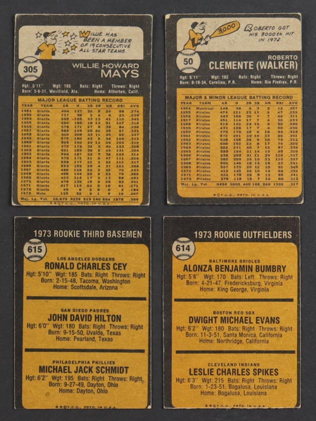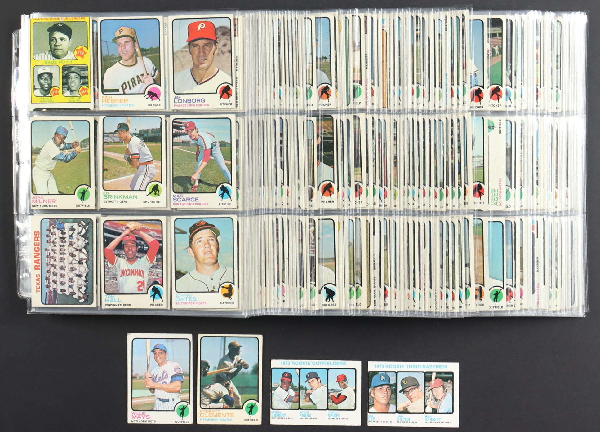 1973 Topps Complete Set of (685) Baseball Cards with Willie Mays #305, Roberto Clemente #50, 1973 Rookie 3rd Basemen #615, 1973 Rookie Outfielders #614