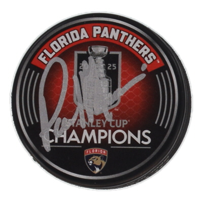 Florida Panthers 2025 Stanley Cup Champions Logo Hockey Puck. Hand-signed by Paul Maurice.